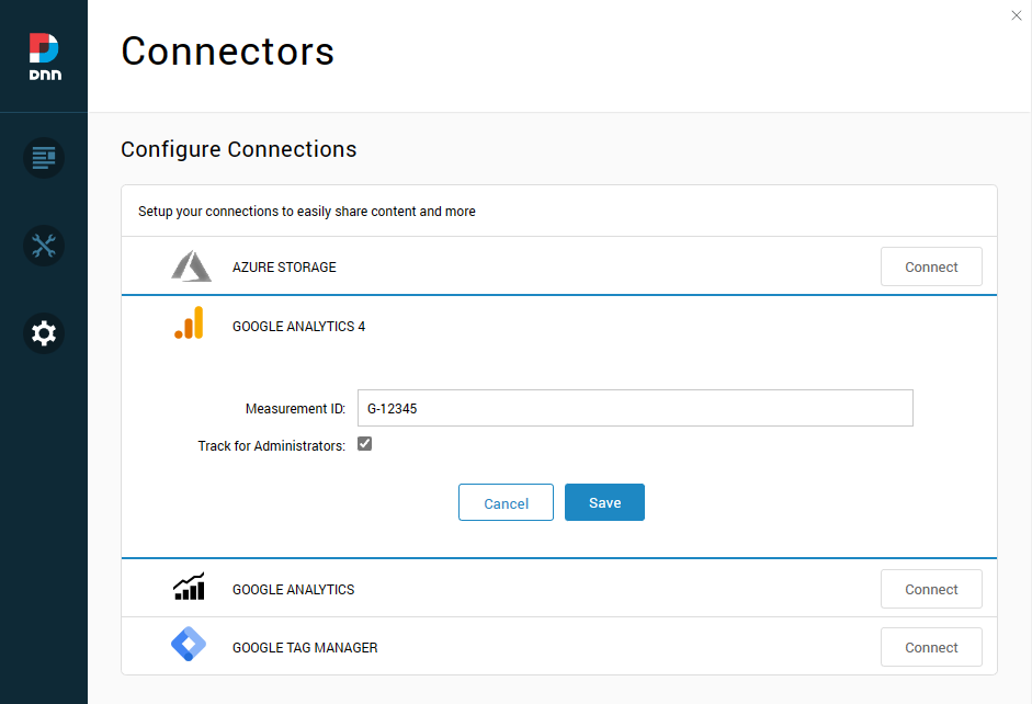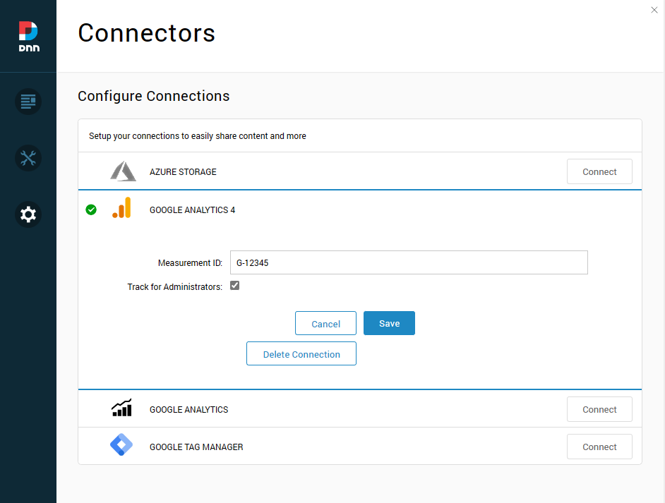Per 1 juli 2023 gaat Google Analytics over naar GA4. Dit betekent dat je het profiel in Google Analytics moet migreren van Universal naar GA4. De embed code die nu op de website staat moet worden vervangen door de GA4 embed code. DNN heeft een nieuwe GA4 Connector beschikbaar gesteld om de code te genereren. Je hoeft dus alleen maar de G-XXXXXXX code te plaatsen.